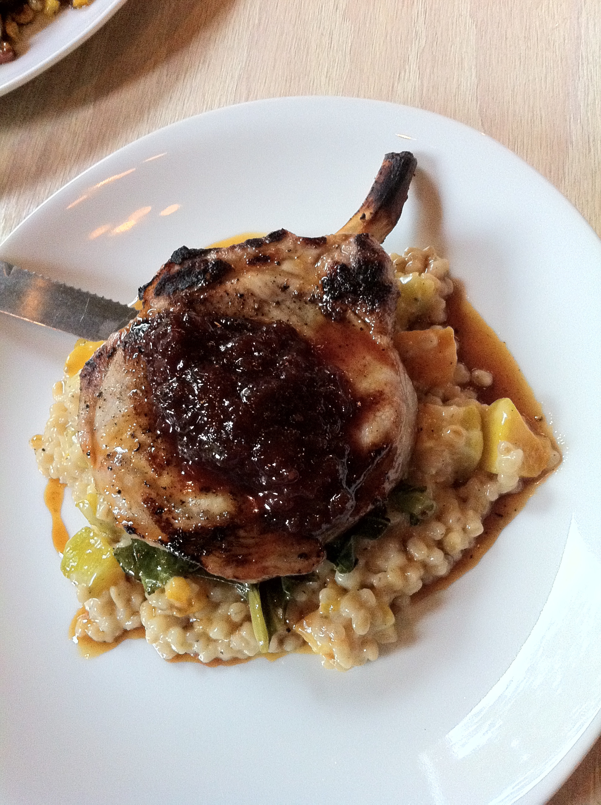 Once again, we had such amazing food. Kirby had a pork chop on barley risotto: