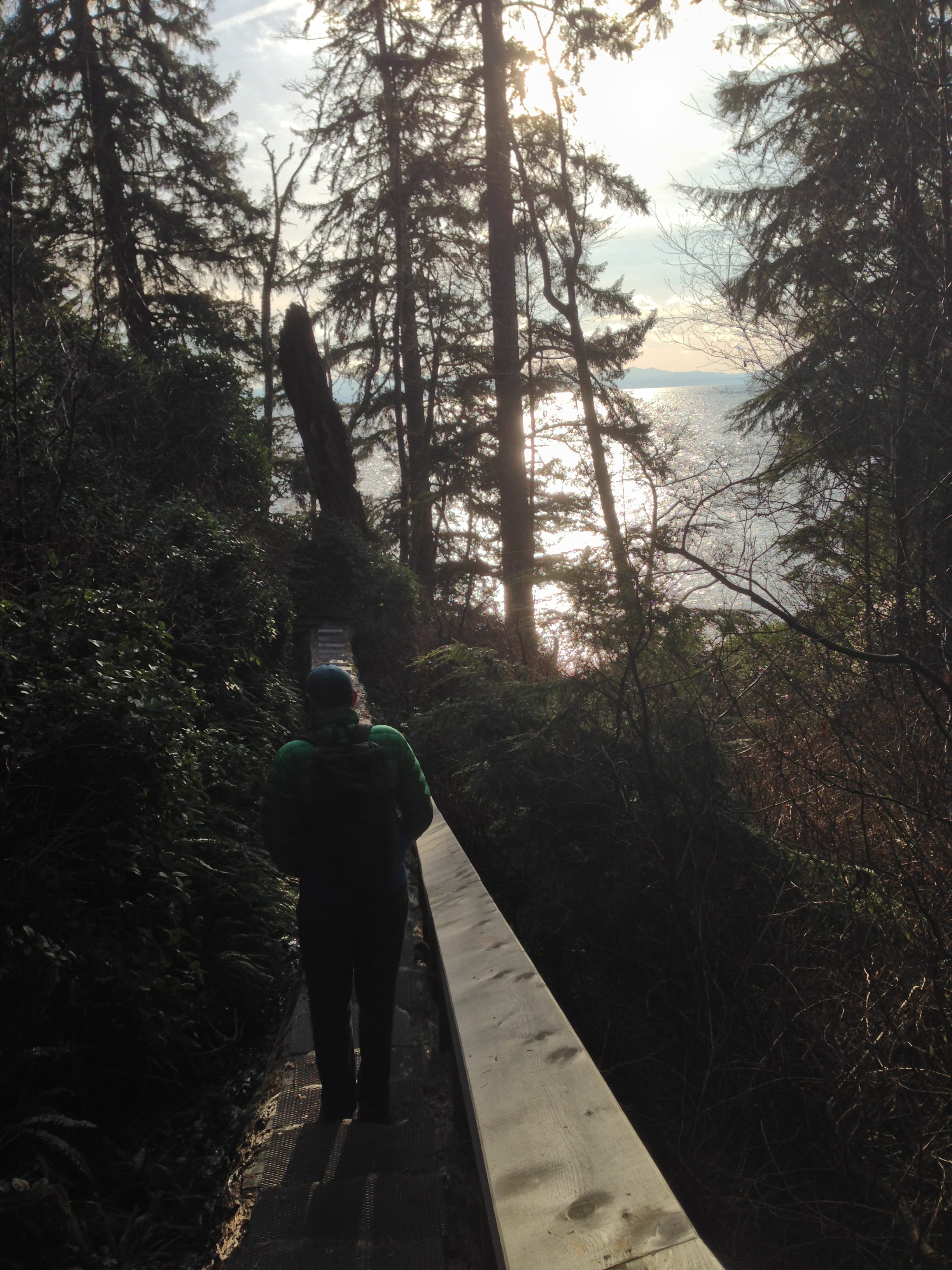 Today was a beautiful sunny and cold day in Victoria. Probably the coldest day of winter we’ve had yet, about -2. So we decided to drive out past Sooke to the trail head for Mystic Beach.