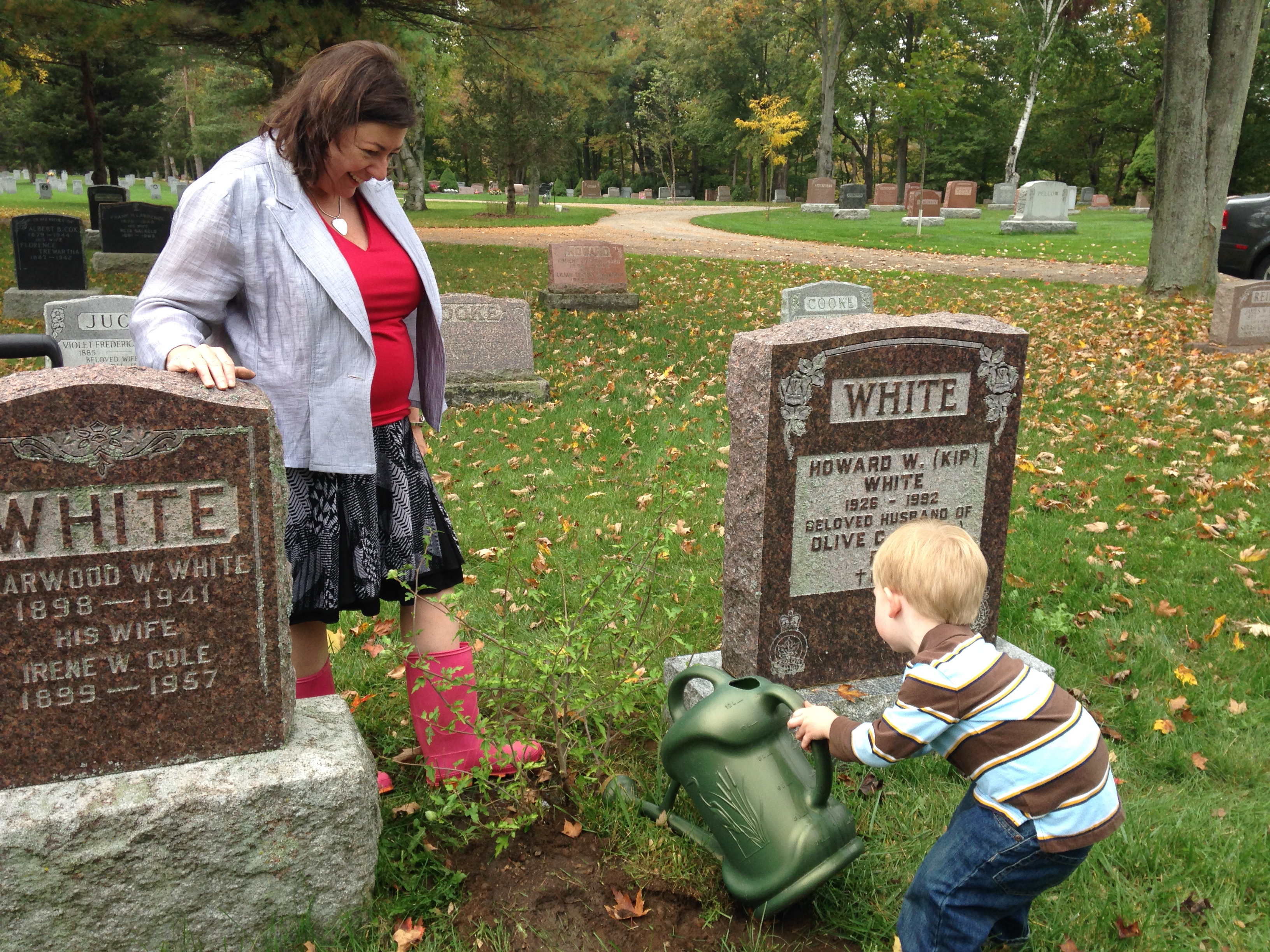 After lunch we went to the cemetery to plant a rose bush where she will be laid, next to my grandpa.