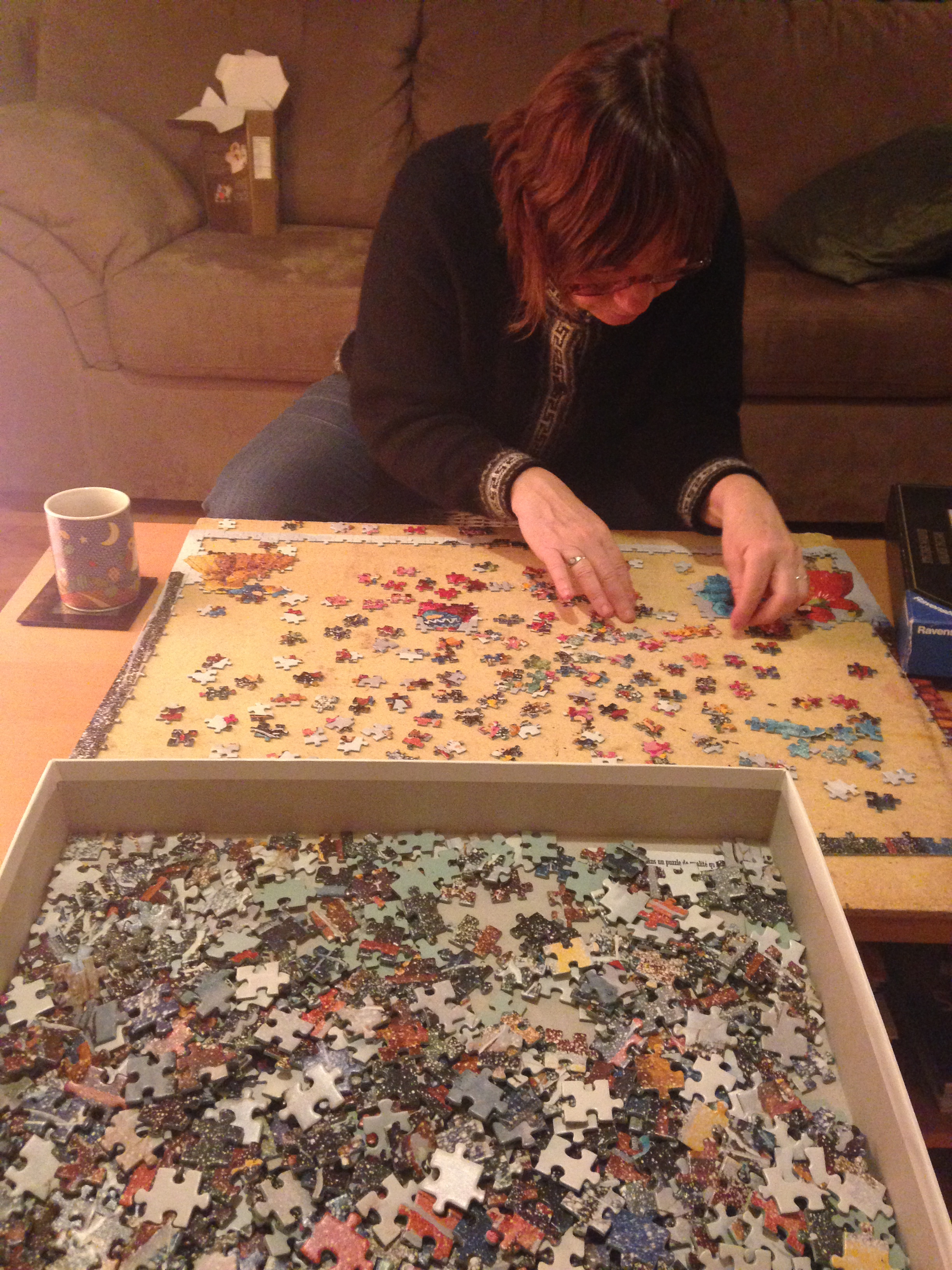 On Christmas day Kirby dropped me at my mom’s and hung out for a few hours then drove back to Ottawa. Mom and I then decided to start our Christmas puzzle! In the end we were able to finish this 1000 piece puzzle in 4 days and I have to admit, working on this puzzle with my mom was one of the best experiences I have ever had. It truly embodies the reason why we came back East. We would sit together, drink tea, listen to music and spend HOURS just sitting together. Some times chatting, sometimes just being quiet, but just being effortlessly together. I rarely ever get to have my mother sit still with me (because she’s one of those superstar women who is always making 3 dinners and dessert and cleaning the bathroom all at once) but this year, with Michael at home full-time, it meant that mom didn’t have to do it all. I’m grateful for that.