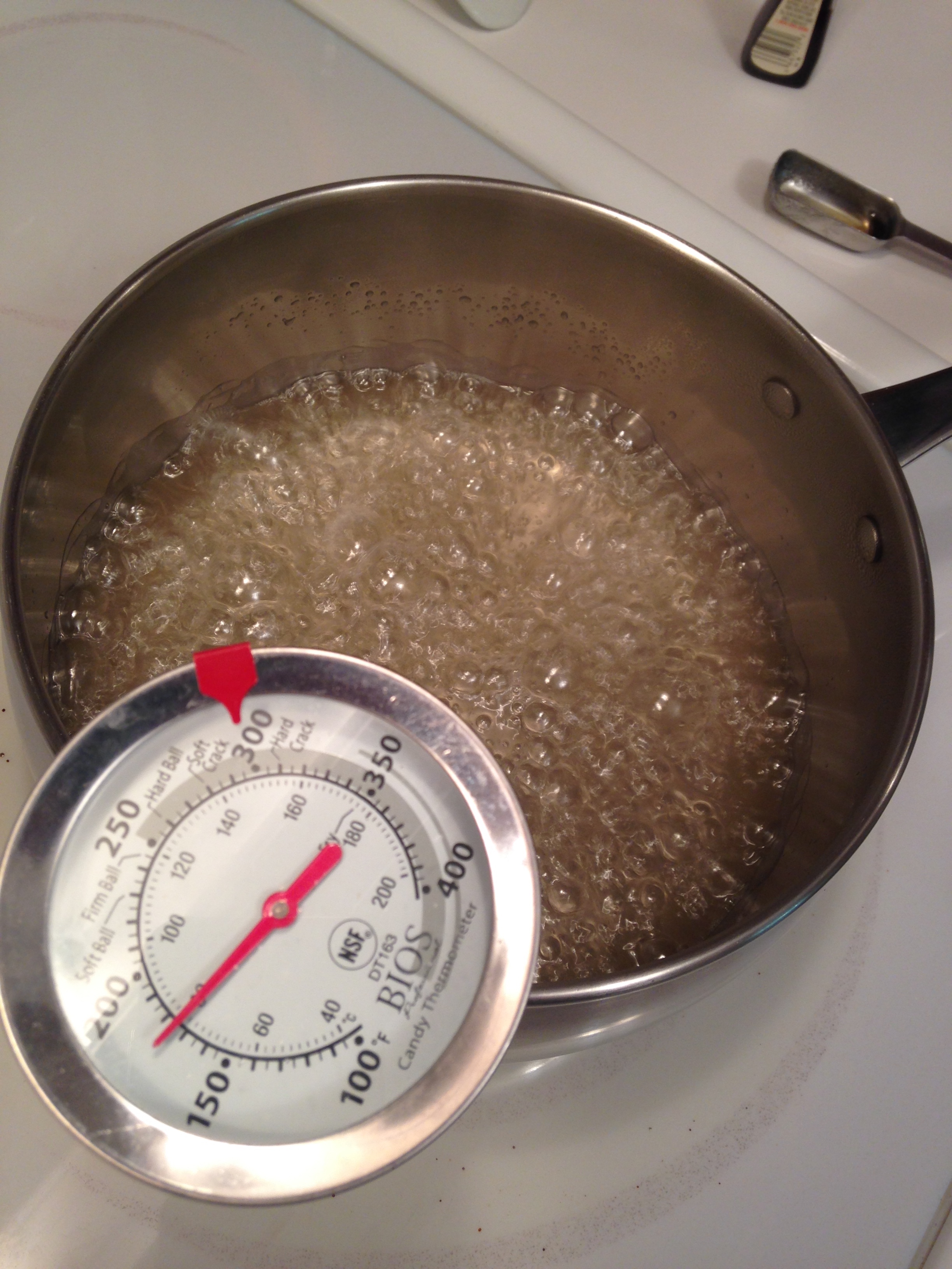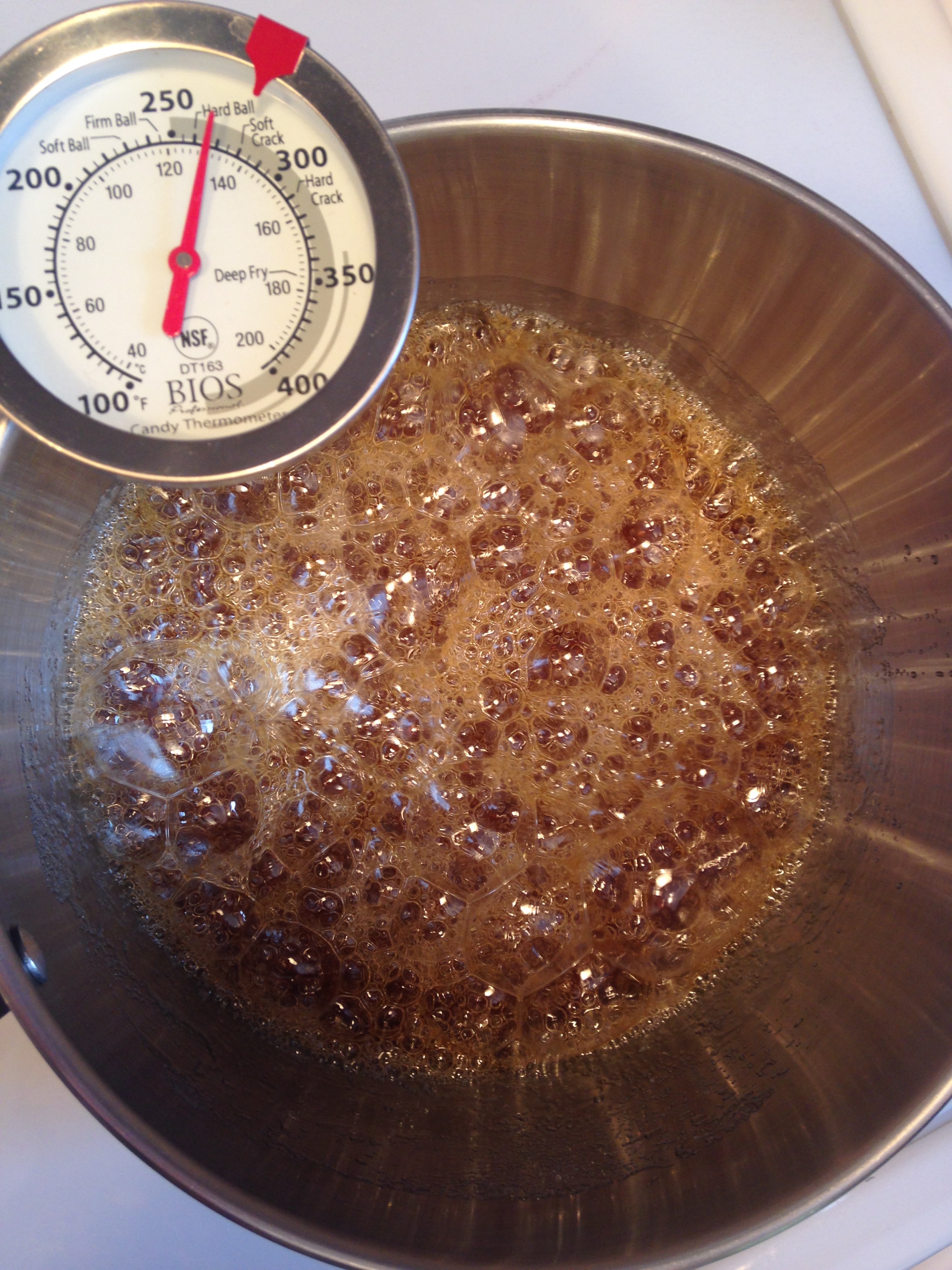 While we were letting the gumdrops set we decided to make a candy recipe that Sylvie used to eat as a kid called sucre d’orge (barley sugar). It was a very simple recipe (original found here):
