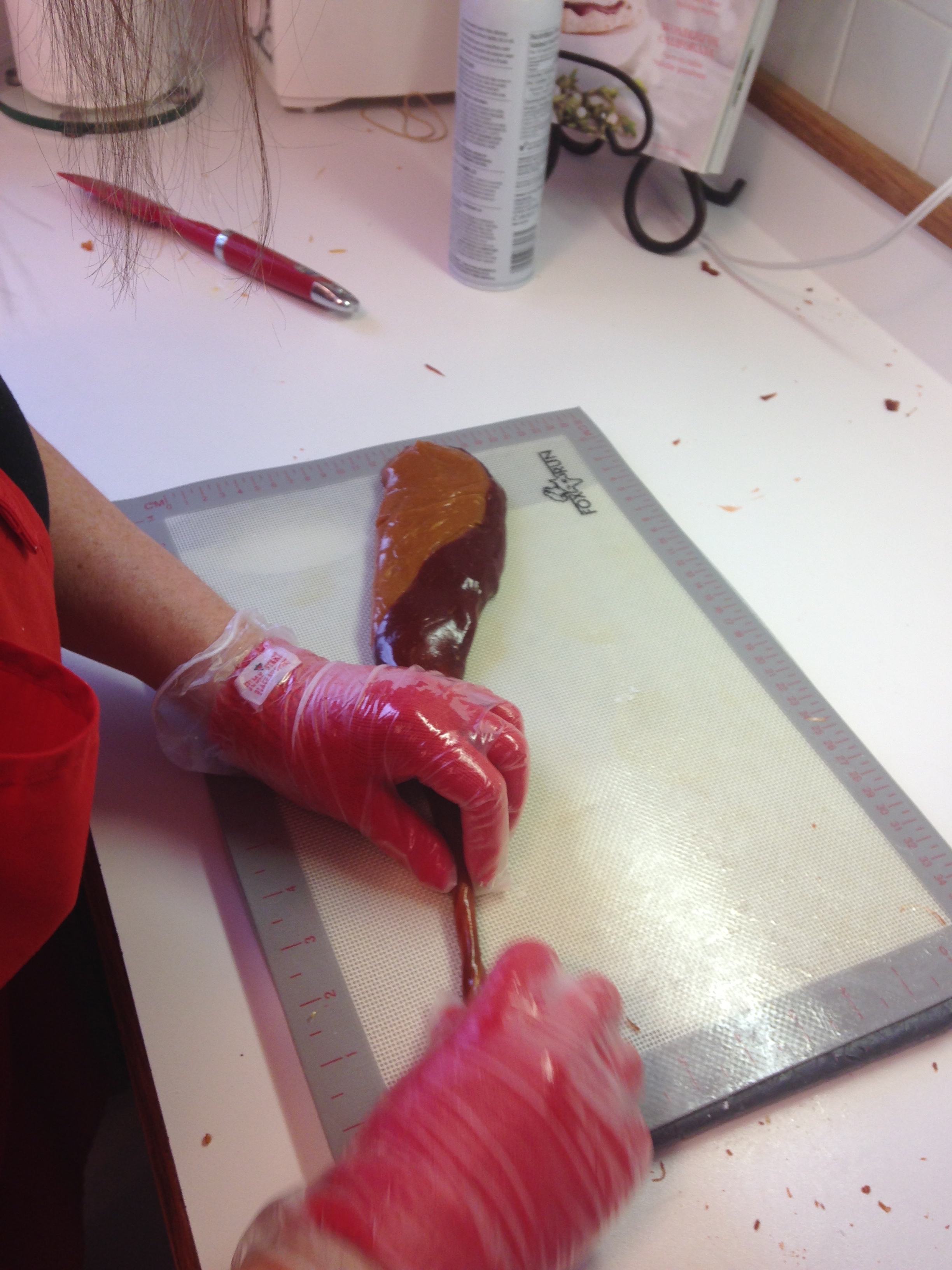 Sylvie had the pull and twist technique perfected and then I would take them and try to shape them in to canes and leave them to dry.