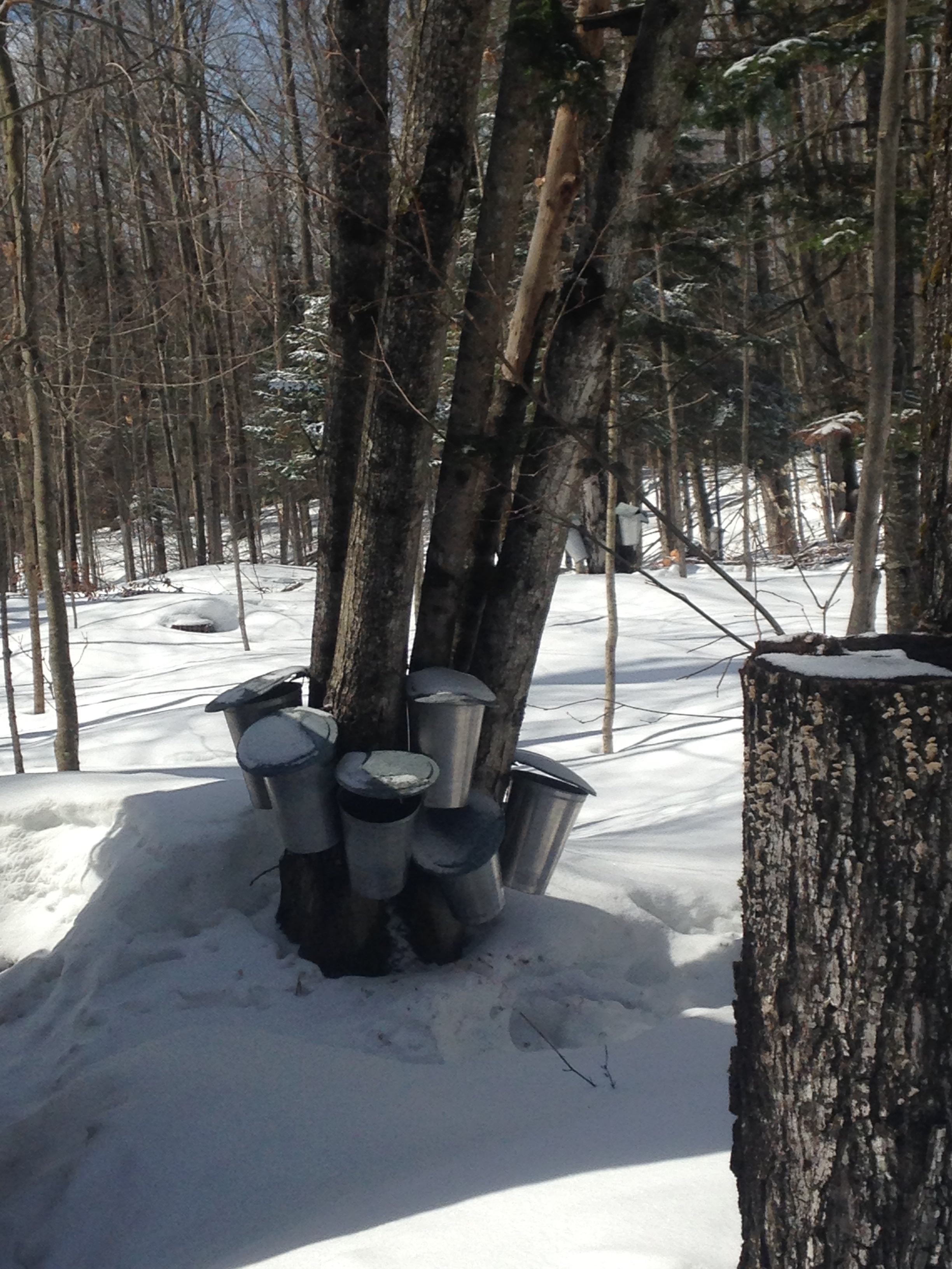 Last weekend was Easter and for the long weekend we decided to go to Orford to see my mom and help out with the cabane à sucre (sugar sack). The trees had been tapped the week before and unfortunately the weather didn’t cooperate with our plans so the syrup wasn’t being boiled and the buckets were dry, but I took pictures anyway.