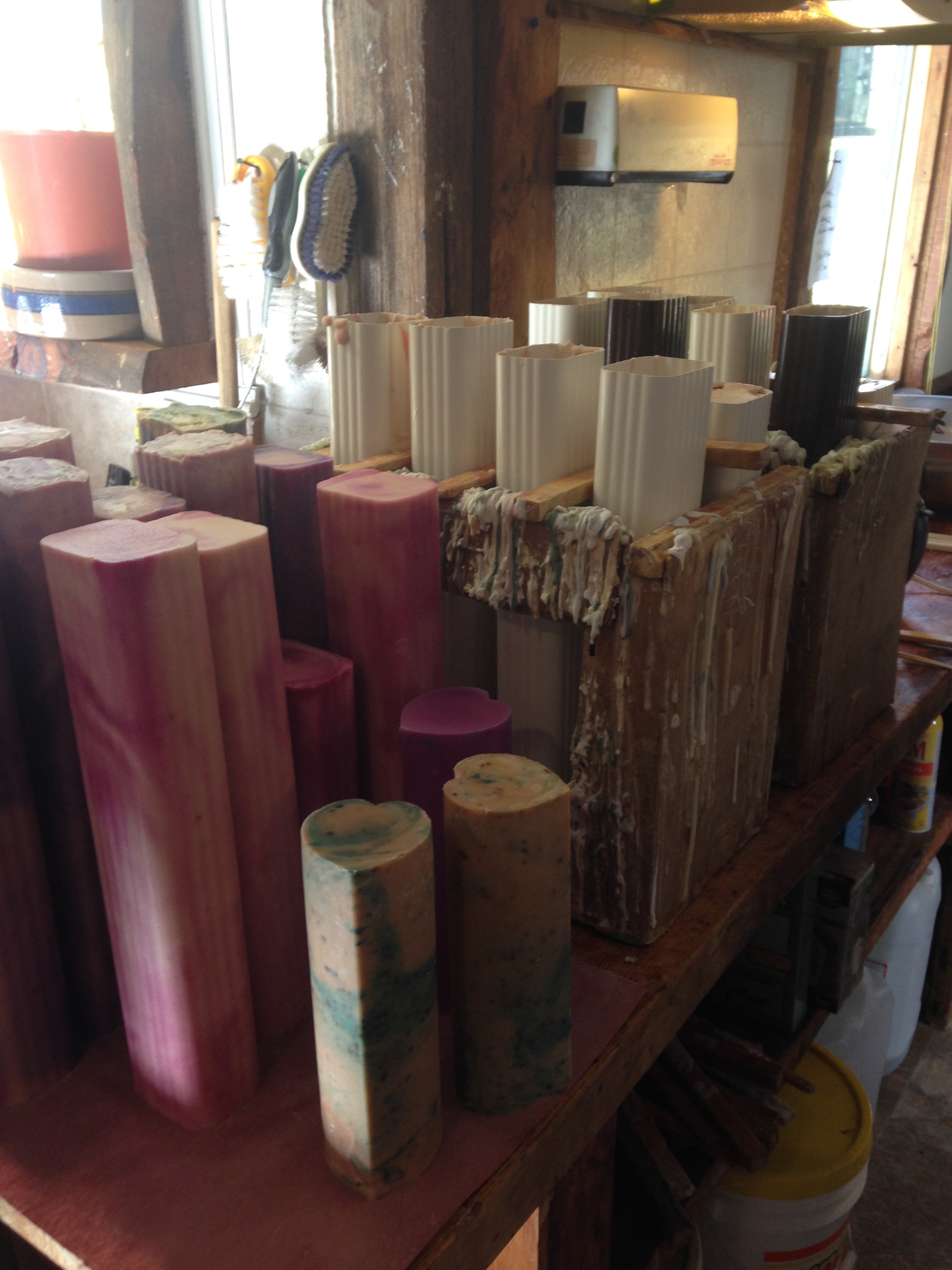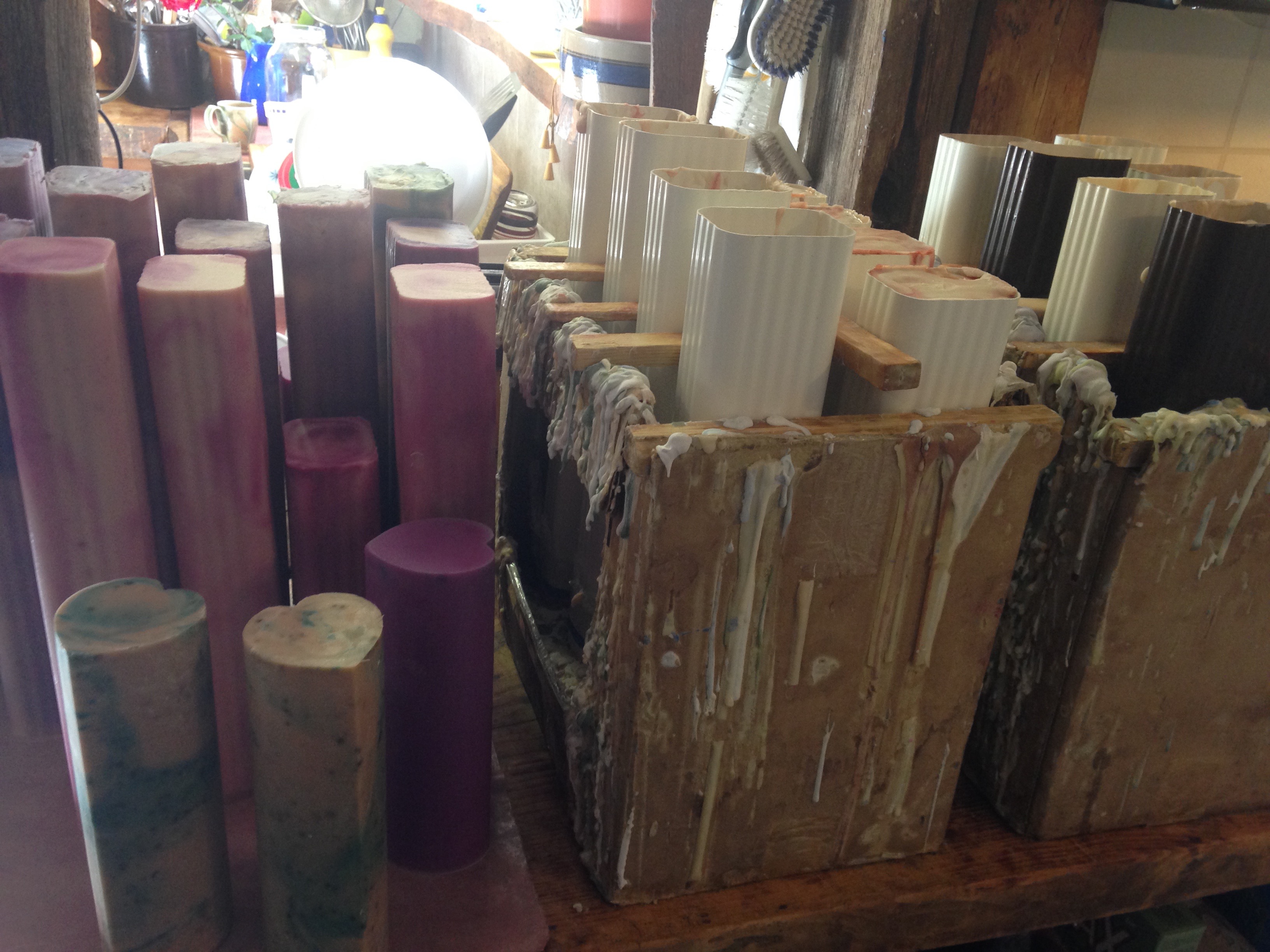 They use bread pans and eavestroughs for their soap molds.
