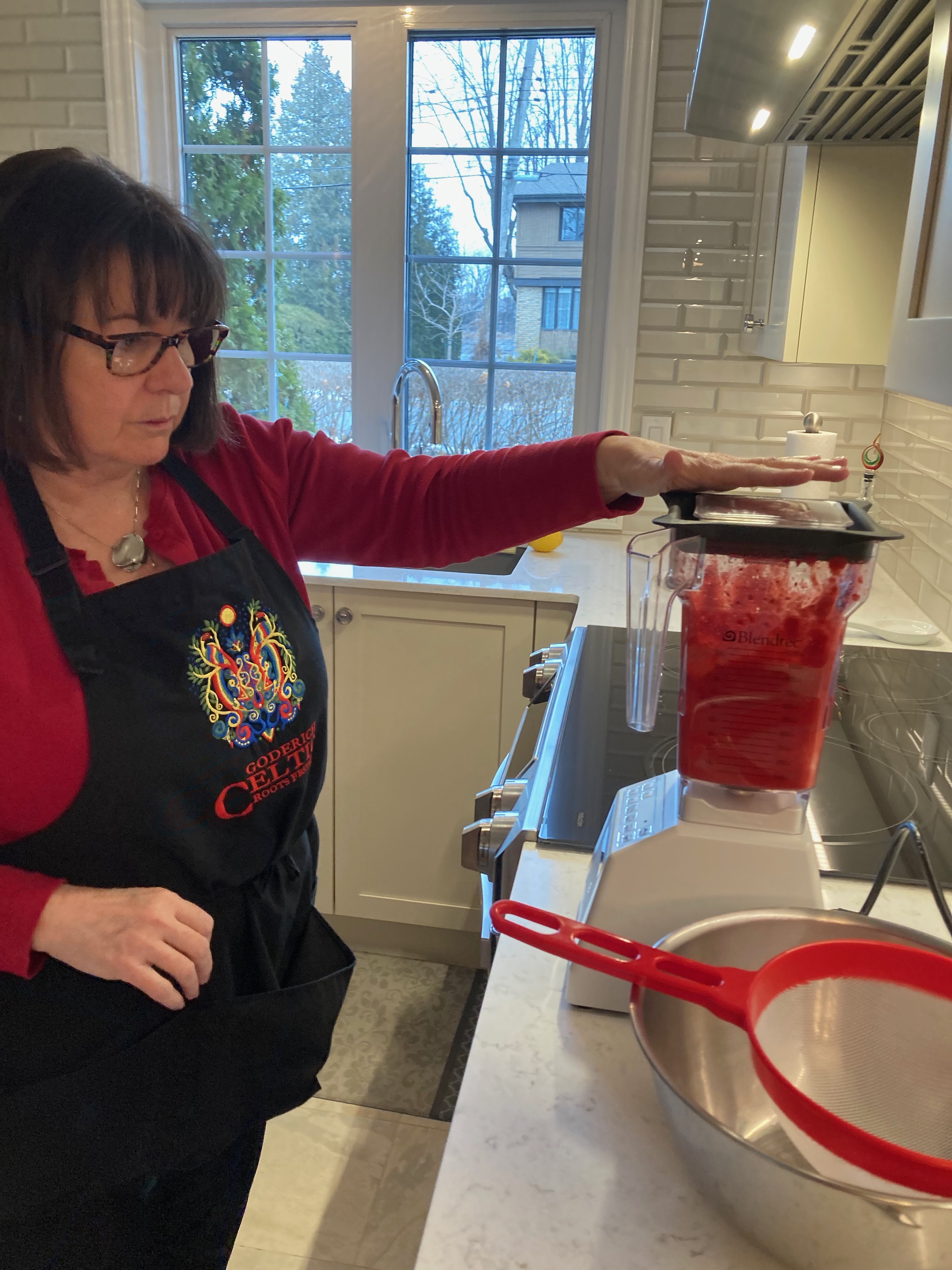 This year Sylvie and I were excited to be able to bake together in person again, and in their beautiful new kitchen nonetheless. Kirby and I arrived mid-morning and Sylvie and I started by getting ourselves organized. We decided to start with a recipe from Ricardo that Sylvie found in a magazine for pâte de fruits à l’érable. We made two types, one with raspberries and one without.