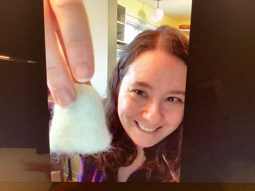 I’m very glad we decided to go ahead with a virtual version because this year we tried needle felting. I’ve been curious about needle felting for quite a while now, but never seemed to make the excuse to dive in. And that’s the magic of our annual baking sessions, we make the time to try new things. So I set out my supplies and called Sylvie on FaceTime.
