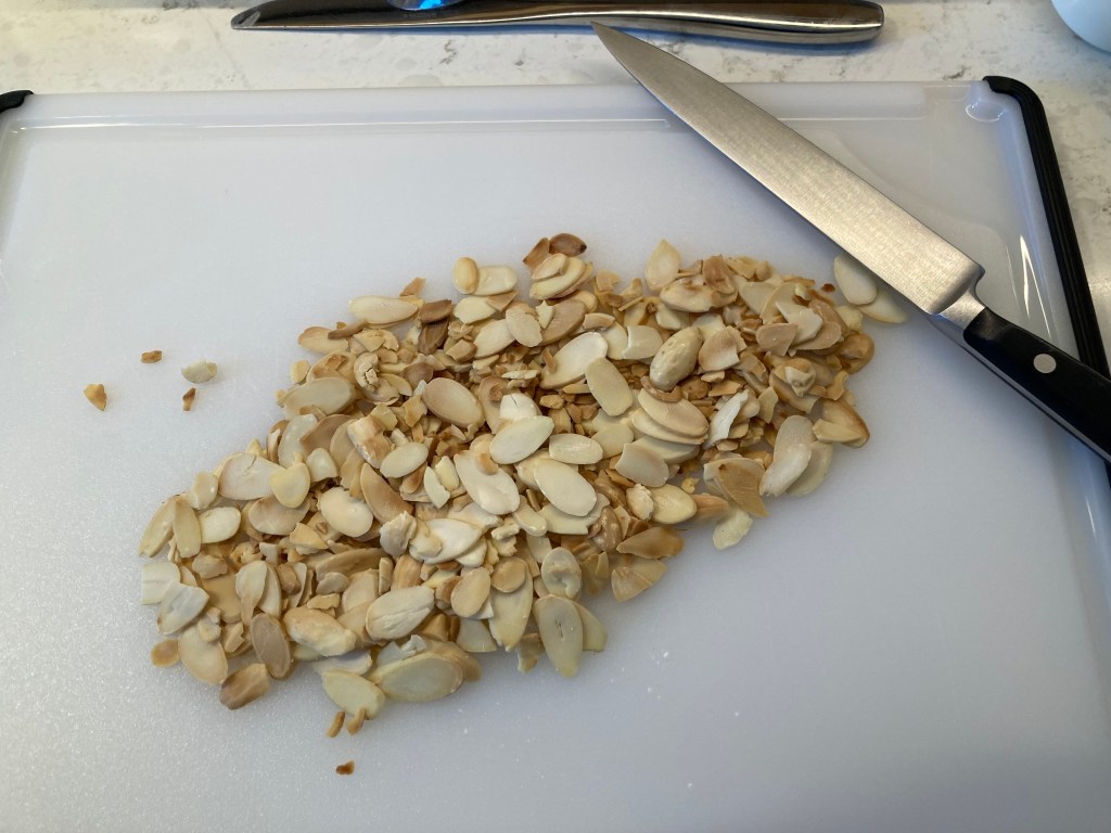 Sylvie toasted some almonds while I mixed the rest of the ingredients for the shortbread base.