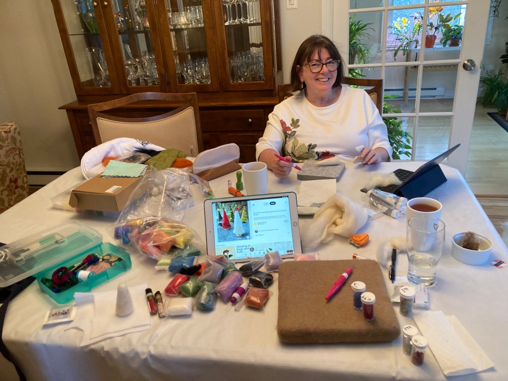 Then we let the caramel cool in the fridge for a couple hours, and got started on our felting project. We’re still in our needlepoint felting era, and loving every finger-pricking moment.