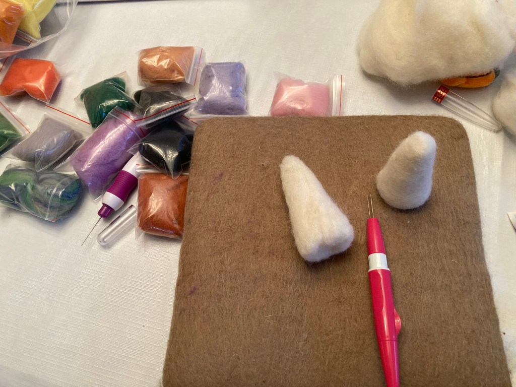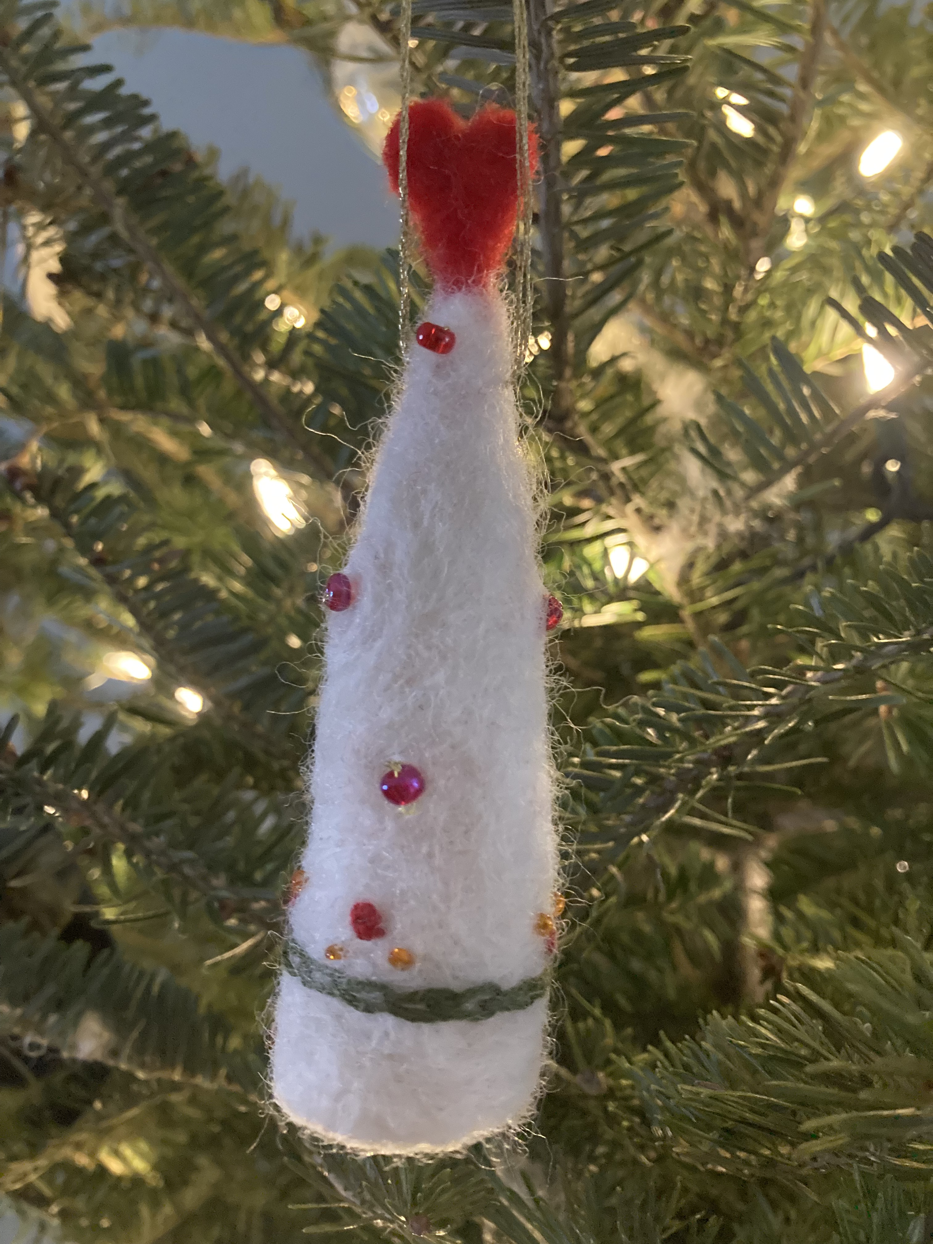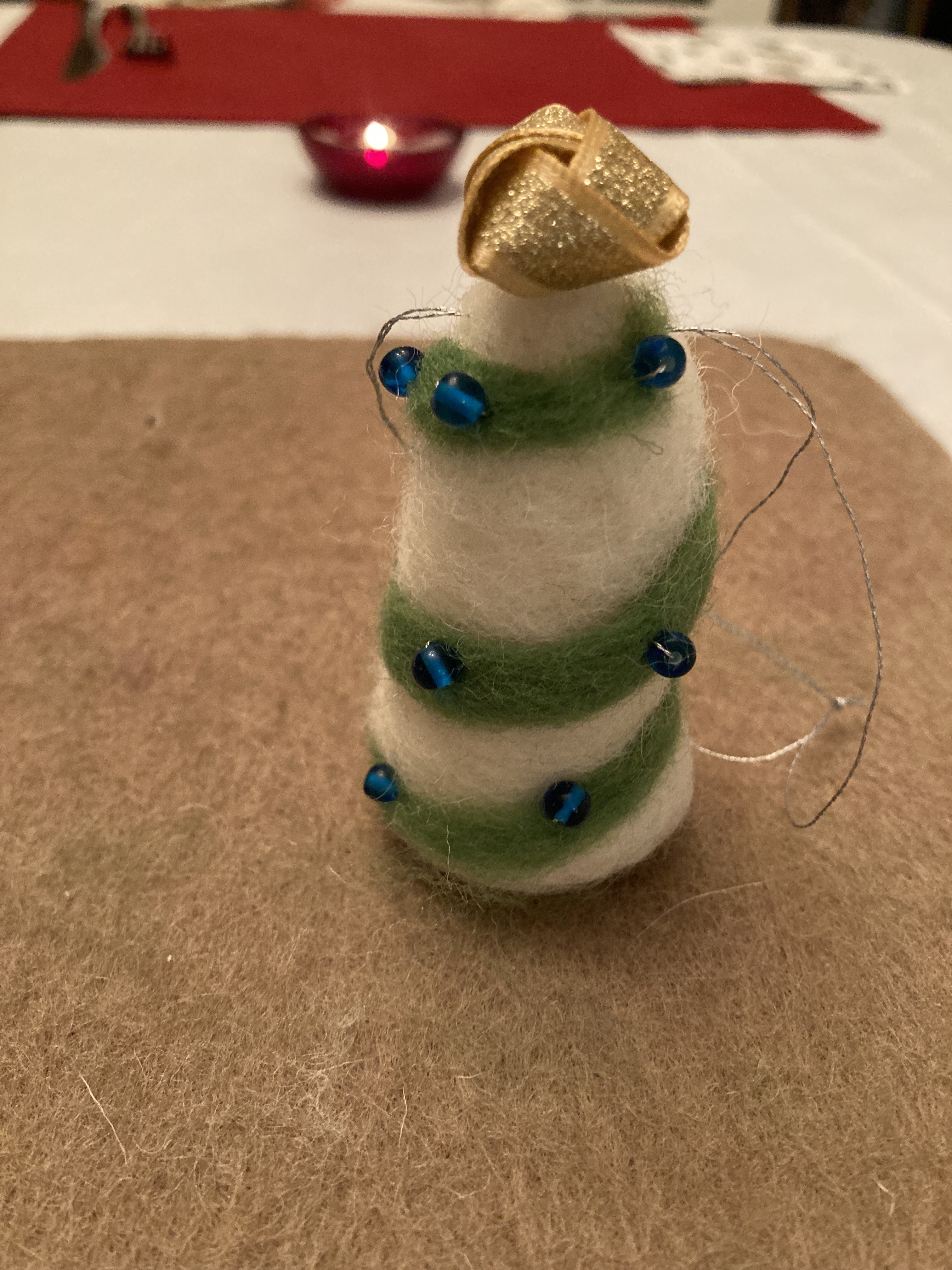 Once we set the Millionaire Shortbread to the side, we went back to our felting. We decided to make little tree ornaments decorated with different embroidery and beads.